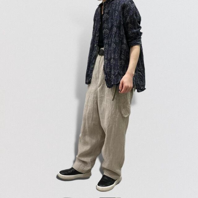 薄すぎず厚すぎない、この時期のボトムスに最適なリネン40番手糸で織っています。
