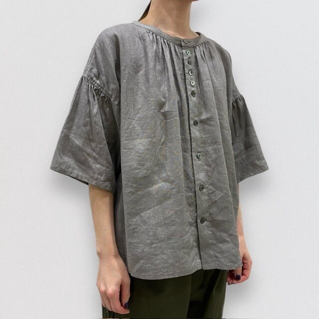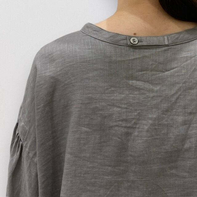 スタンドカラーから少しギャザーを寄せて、リズムを付けてボタンを並べました。