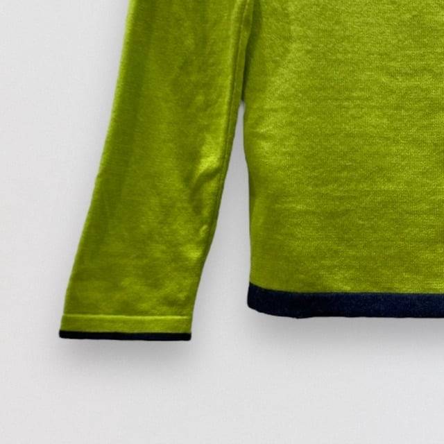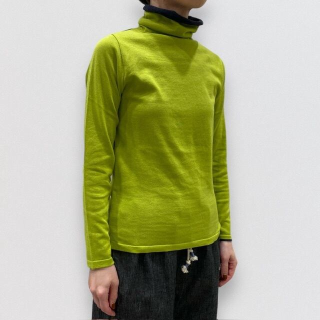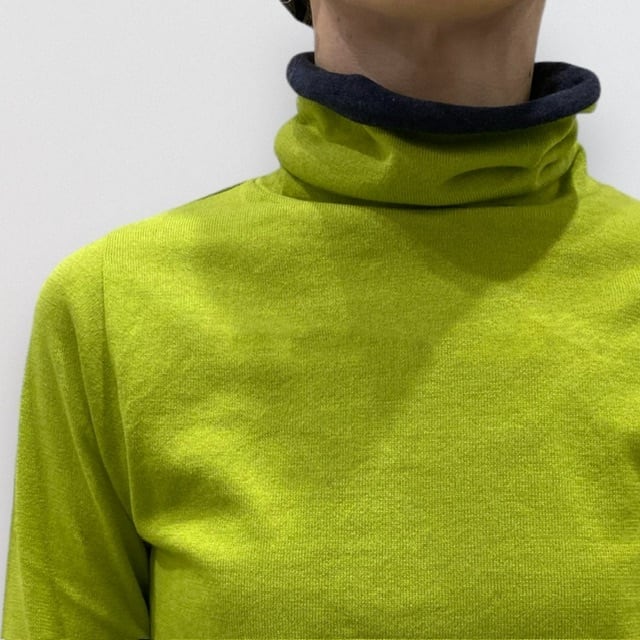 ニットの伸縮性と糸の柔らかさを活かして肌にあたるスッキリとしたサイズ感です。