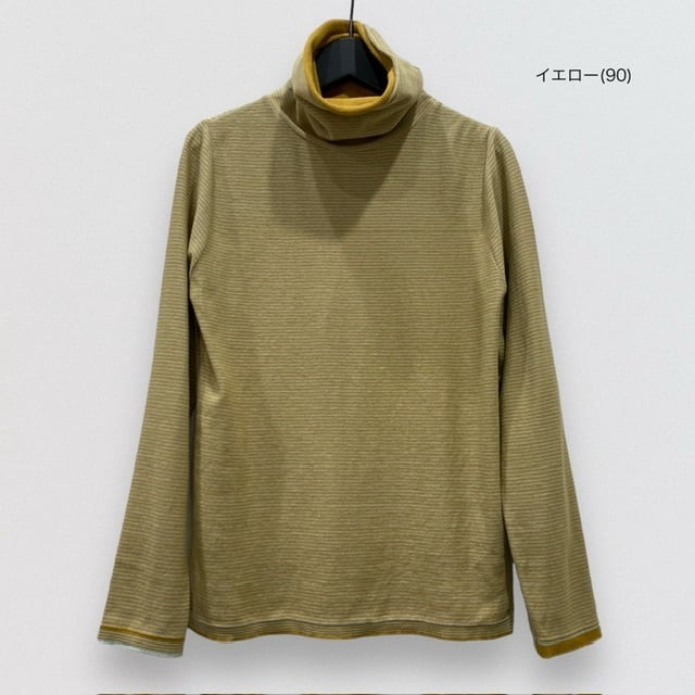 重ね着をしているように見える二重衿のボーダータートルです。