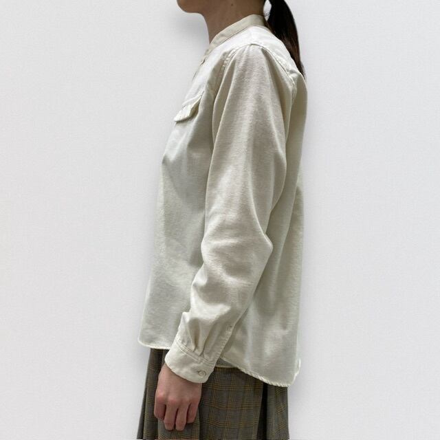 フロント比翼部分と、左フラップに、ハンドステッチを施したシャツです。