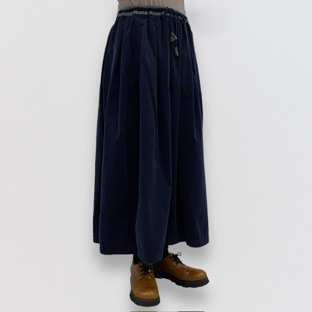 シルエットは好評の型で、タックにより腰回りの膨らみが抑えられ、裾に向かってきれいなボリュームがでます。