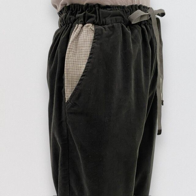 ベースはテーパードシルエットですが、動きに合わせて、サイドのタック分量が、デザイン