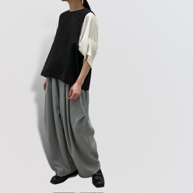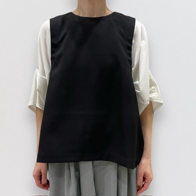 シャリ感のあるメンズライクな素材を使用したクルーネックショートベストです。