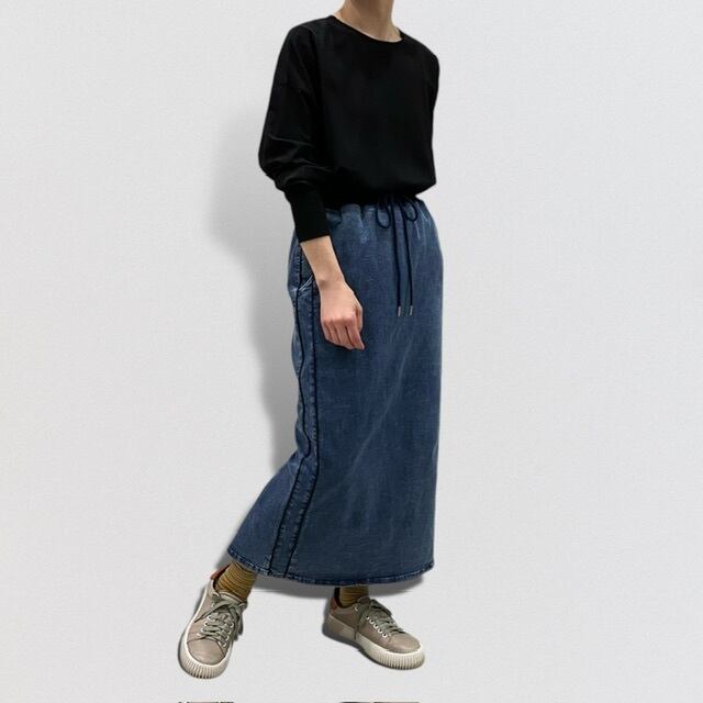両サイドにライン入りデニムタイトスカート。
