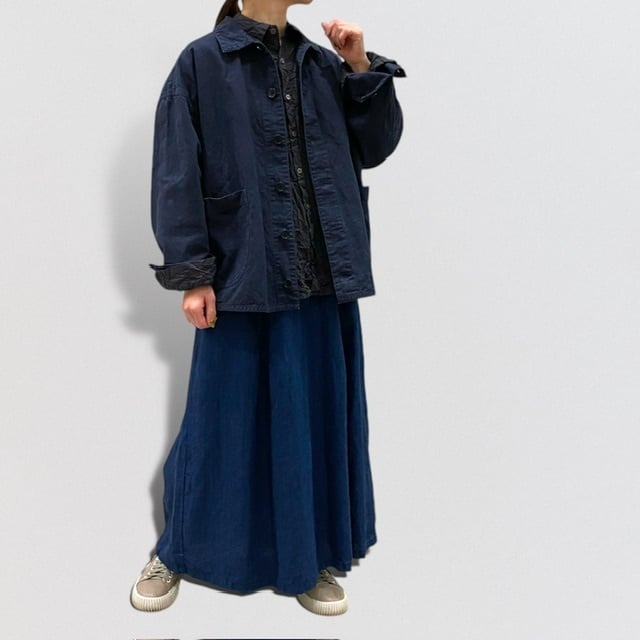 ゆとりある着やすいシルエットと、大きくて機能的なポケットが特徴です。