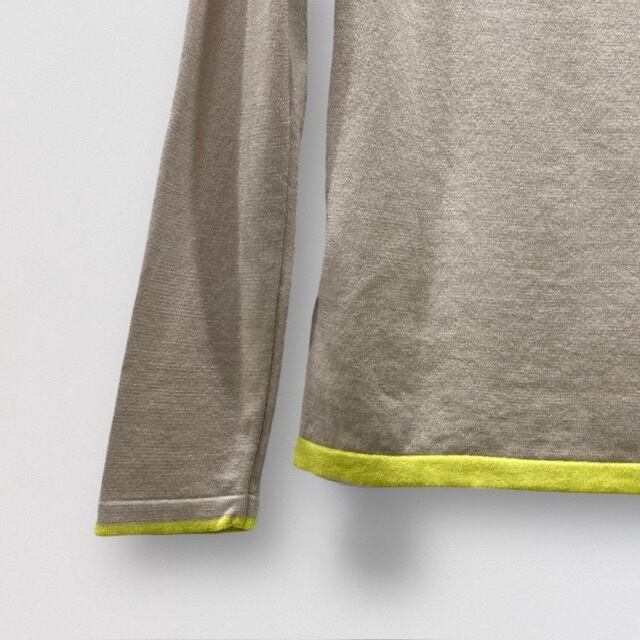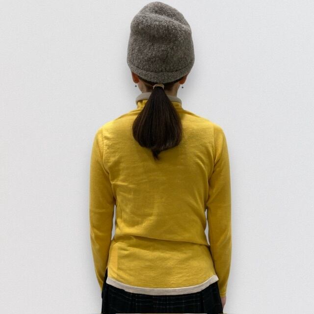 ニットの伸縮性と糸の柔らかさを活かして肌にあたるスッキリとしたサイズ感です。