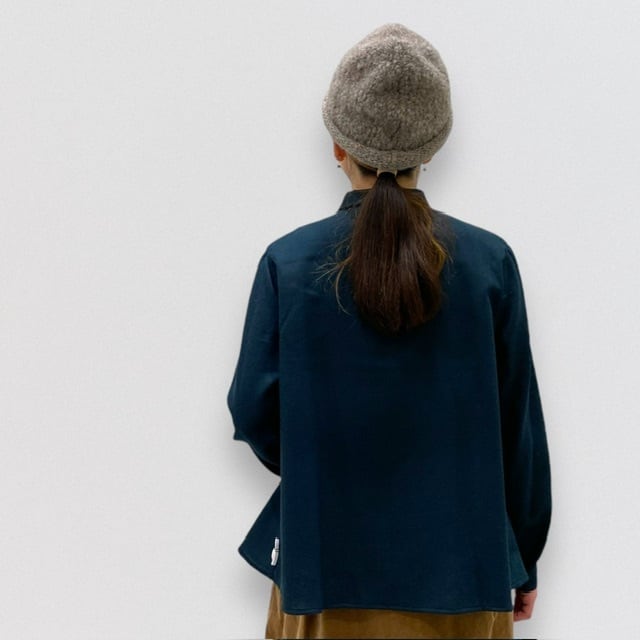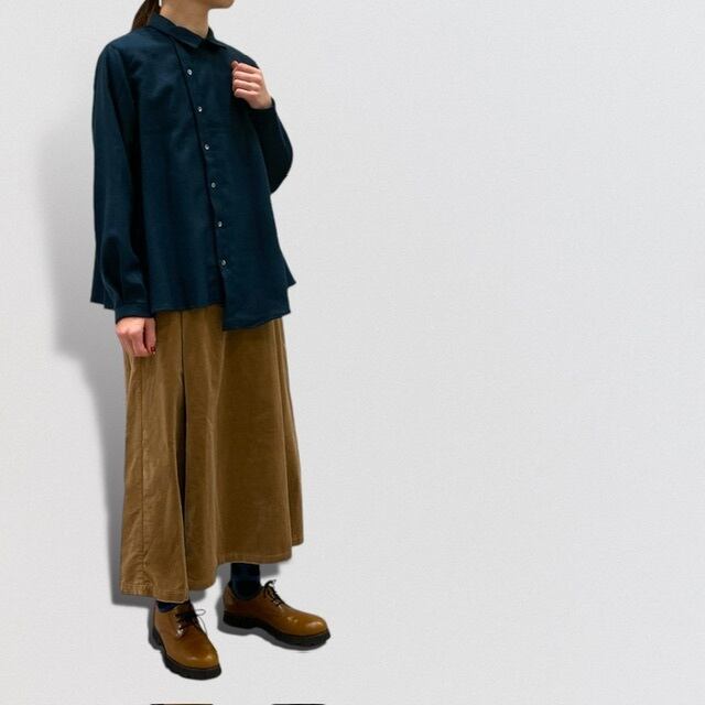 フロントの釦あきがアシンメトリーデザインのシャツです。