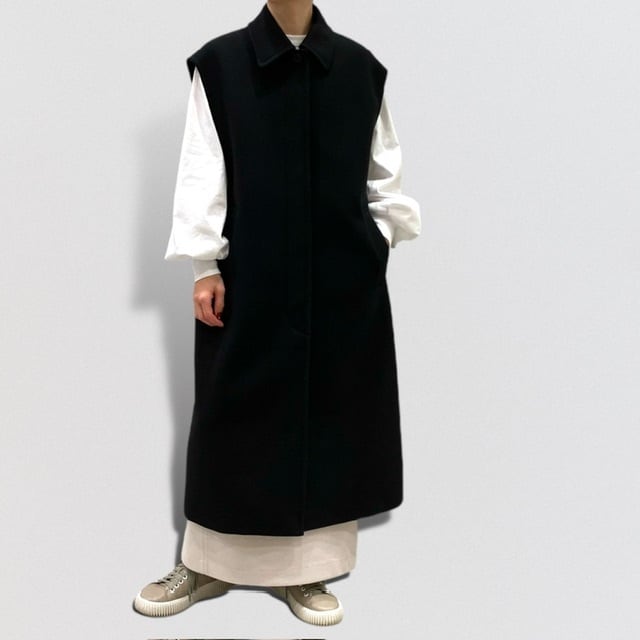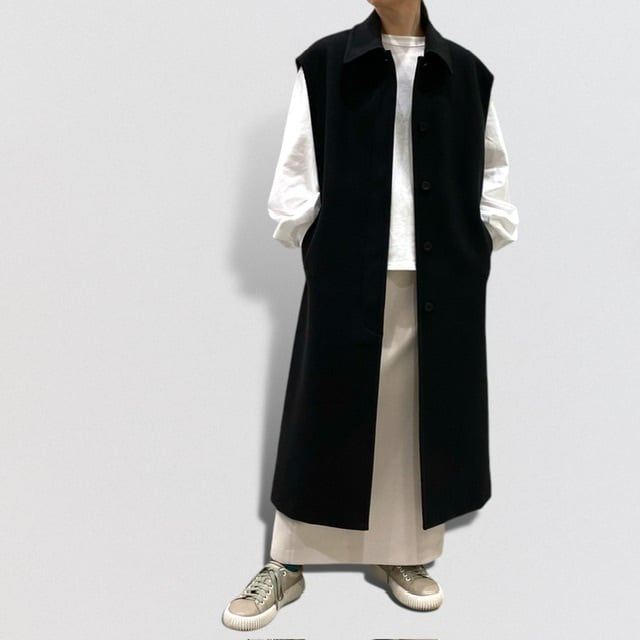 ウールの様な温かみのある表面感とジャージーならではのストレッチ性を兼ね備えたロングベストです。