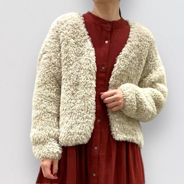 ふわふわのエコファー素材を使用したカーディガンです。
