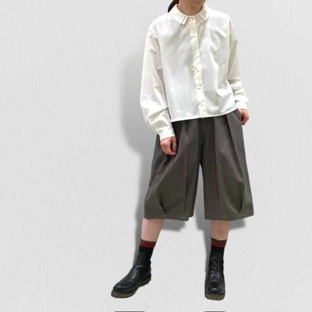 ゆとりのある身幅ですがすっきりとしたヒップ上の丈感と滑らかな生地感がマッチしており上品な雰囲気を演出した1枚。
