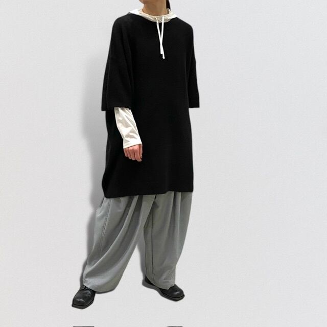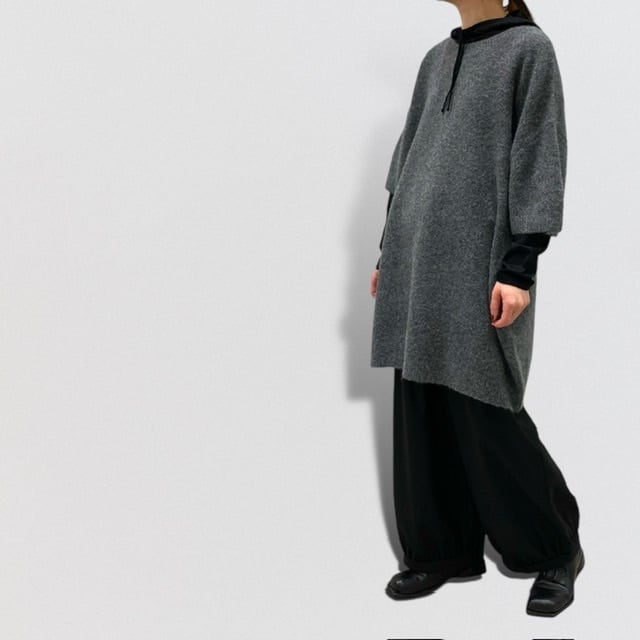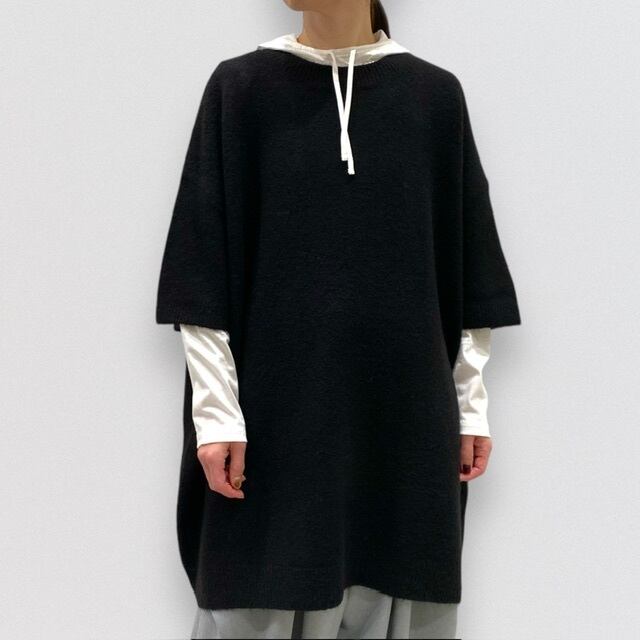 毛羽が少なく、光沢感のある素材を使用したフードライクハイネックプルオーバーです。
