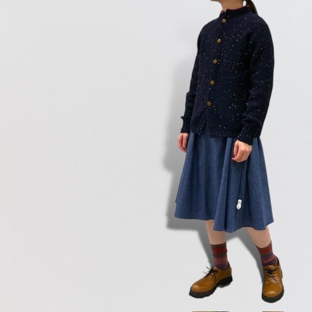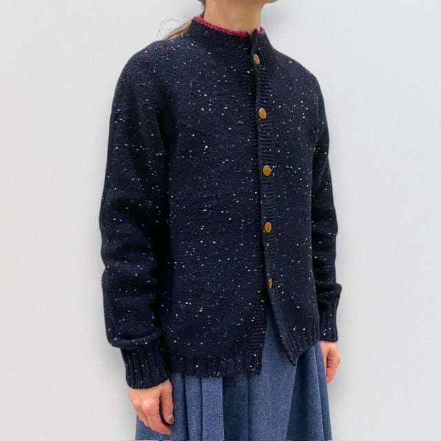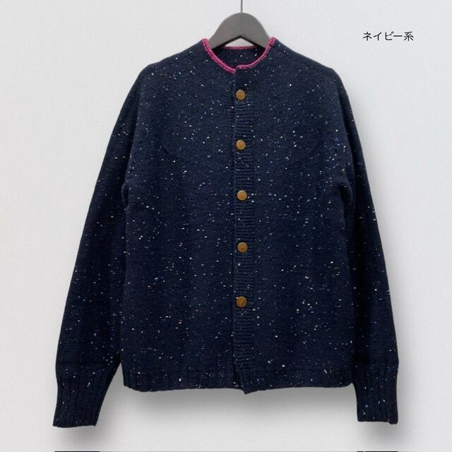 太番手のカラーネップが3~4色入った糸で編み込んだカーディガンです。