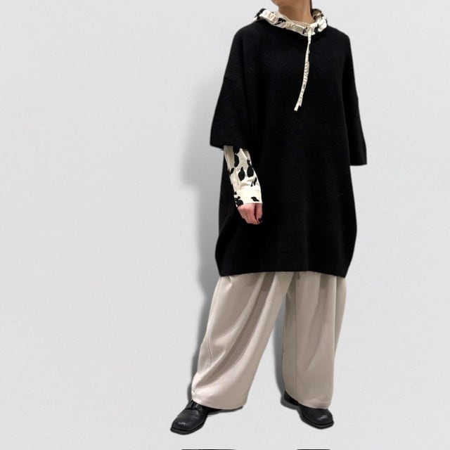 シャツやワンピースとのレイヤードにもお勧めのハーフスリーブクルーネックチュニックです。