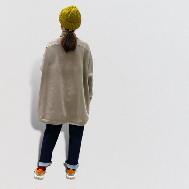 裾にかけて脇のラインを前に振り、足が綺麗に見える立体的なシルエットを目指しました。