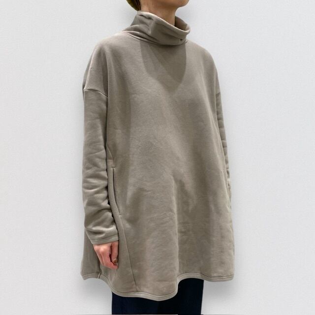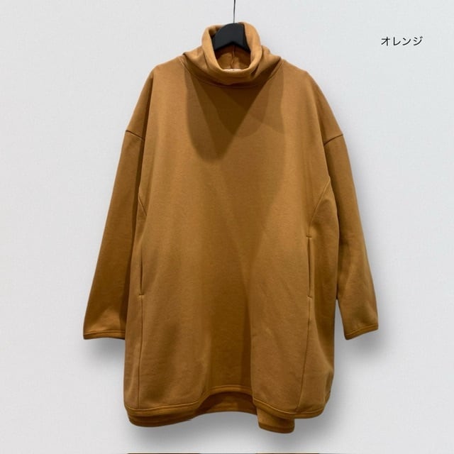 チュニック丈のハイネックプルオーバーです。