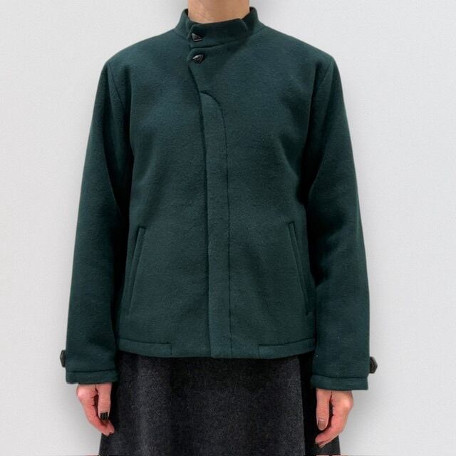 紡毛をメインに、表面のみ縮絨・起毛し、毛羽を短く刈りそろえて仕上げた生地です。