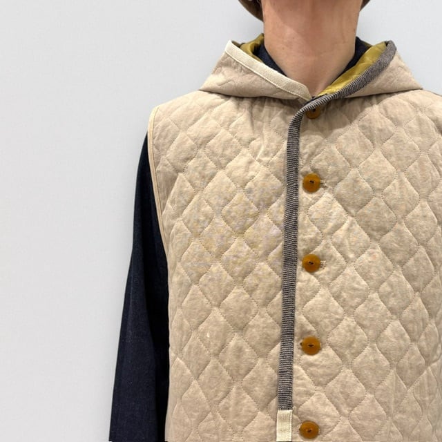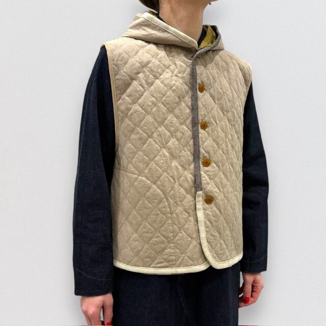 中綿入りのフード付ベストです。