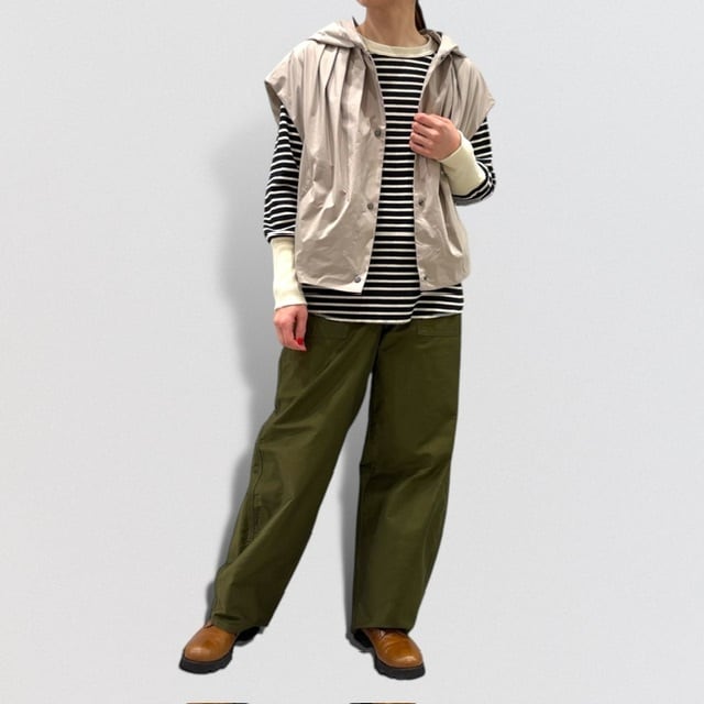 両サイドの大きめポケットがワーク感のある表情で、シンプルにシャツやカットソーと合わせるだけで様になります。