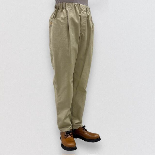 フロントにワンタックのある、ウエスト ALL ゴム仕様のスリムパンツです。